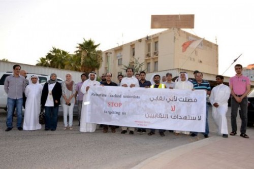 وفي بيان صدر عن المفصولين قالوا فيه: «نحن مجموعة من رؤساء النقابات العمالية المنتسبة إلى الاتحاد العام لنقابات عمال البحرين، أقمنا وقفة تضامنية بمقر الاتحاد العام لنقابات العمال، نطالب وزارة العمل بالضغط على أصحاب العمل لوقف فصل النقابيين وإرجاع من فصل منهم».