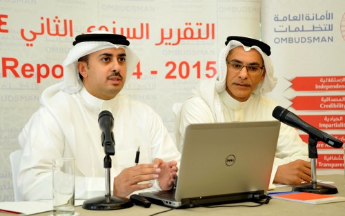 Bahrain Mirror: Ombudsman Nawaf Al-Moawda stated that, during the period between May 1st 2014 and April 30, 2015, the Secretariat of Ombudsman "received 908 grievances including 319 complaints and 589 help requests."