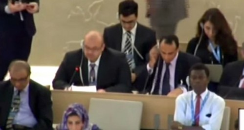 مرآة البحرين: أكد رئيس المركز الدولي لدعم الحريات والحقوق أحمد عمر في كلمة أمام مجلس حقوق الإنسان التابع للأمم المتحدة في جنيف، أن السلطات البحرينية أهدرت حق الأمين العام للوفاق الشيخ علي سلمان في الدفاع عن نفسه مؤكداً أن سلمان سجين رأي ويعتقل في ظل حرمانه من الحق في محاكمة عادلة ما يعد مخالفة واضحة للقانون الدولي الإنساني.