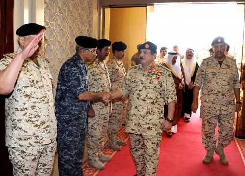 وخلال زيارة لمقر قيادة الجيش حيث التقى ضباطا يشاركون في الحرب على اليمن، قال حمد بن عيسى "نشارك أهلنا المواطنين مشاعرهم الأبوية في مثل هذه الظروف ونقدرها، فأبناؤنا سمو العميد الركن الشيخ ناصر بن حمد آل خليفة وسمو الرائد الشيخ خالد بن حمد آل خليفة كانوا هناك يشاركون إخوانهم واجبهم الوطني المقدس ضمن قوات التحالف العربي للدفاع عن الشرعية في اليمن، وسيستمرون في عملهم في هذا الواجب المشرف كفريق واحد مع إخوانهم" -على حد تعبيره-.