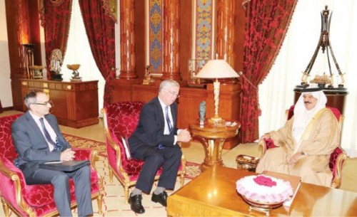 وقالت وكالة الأنباء الرسمية "بنا" إن حمد بن عيسى ملك البلاد استعرض أثناء اللقاء "علاقات الصداقة والتعاون التاريخية الوطيدة".