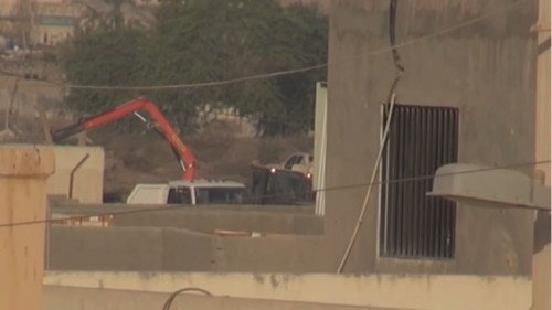 The video recorded on Monday (September 28, 2015) shows excavation vehicles digging near a house in Nuwaidrat amid heavy security presence.