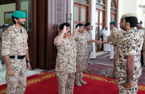 مرآة البحرين: استقبل ملك البحرين حمد بن عيسى آل خليفة (الأربعاء 7 أكتوبر/ تشرين الأول 2015) قوات عائدة من اليمن تقدمها نجلاه ناصر بن حمد آل خليفة وخالد بن حمد آل خليفة.
