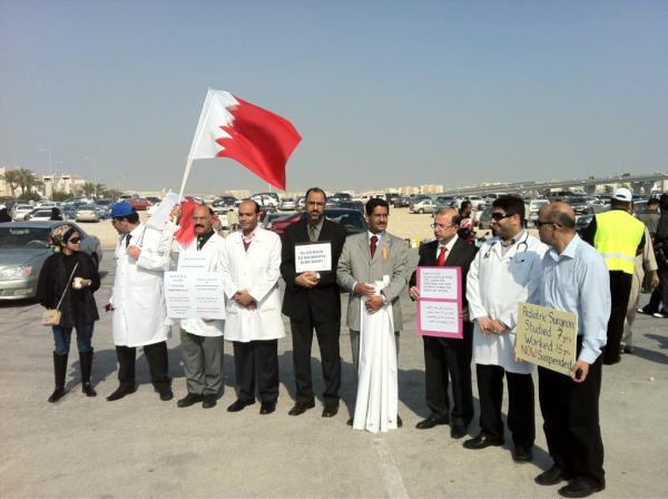 في 4 مايو، استلمت إخطاراً شفوياً بالحضور أمام لجنة التحقيق. استلمت الاخطار الكتابي أثناء جلسة التحقيق، التهم التي وجهت لي هي: الدعوة والاشتراك في الاعتصام. القذف والسب والافتراء وتشويه سمعة الاخرين. إساءة التصرف داخل وخارج مجال العمل. استغلال الوظيفة للإساءة للآخرين. التطاول على النظام ورموز الدولة. المشاركة في المسيرات لإسقاط النظام. المشاركة في محاضرات في الدوار. حضور الخطب السياسية في السلمانية. موقعة من الدكتور بهاء فتيحة قائد المستشفى العسكري رئيس لجنة التحقيق. تم التحقيق بتاريخ 5 مايو معي وإعلامي مباشرة بقرار توقيفي عن العمل لمدة 3 أشهر منذ تاريخه، انتهت في نوفمبر، وبعد مراجعات عديدة، كان الرد ليست لدينا تعليمات لعودتكم، ومن تم تمديد التوقيف.