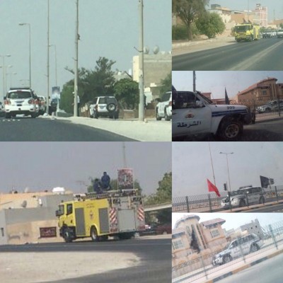 The activists posted photos of the civil defense forces accompanied by a large number of Interior Ministry security forces roaming through the streets of Eskan A'ali to take down any banner or flag related to Ashura.