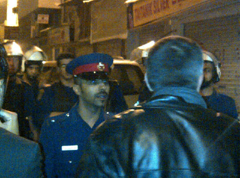 وتحدث الضابط المسئول إلى نبيل رجب مدعيا بأن المسيرة غير قانونية وأن على الجميع التفرق الآن، ورفض رجب التفرق وقال للضابط إن المسيرة سلمية وليس هناك شيء لا قانوني فيها.