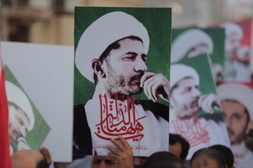 مرآة البحرين: تظاهر الآلاف في البحرين (الجمعة 30 مايو/ أيار 2015) تنديدا باستمرار اعتقال زعيم المعارضة أمين عام الوفاق الشيخ على سلمان، وإدانة مصادقة محكمة سعودية على الحكم بإعدام رجل الدين البارز الشيخ نمر النمر.