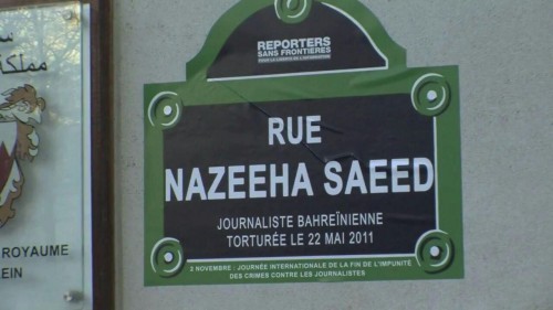 "بلا حدود" تسمي الشارع الذي تقع فيه سفارة البحرين بباريس باسم نزيهة سعيد