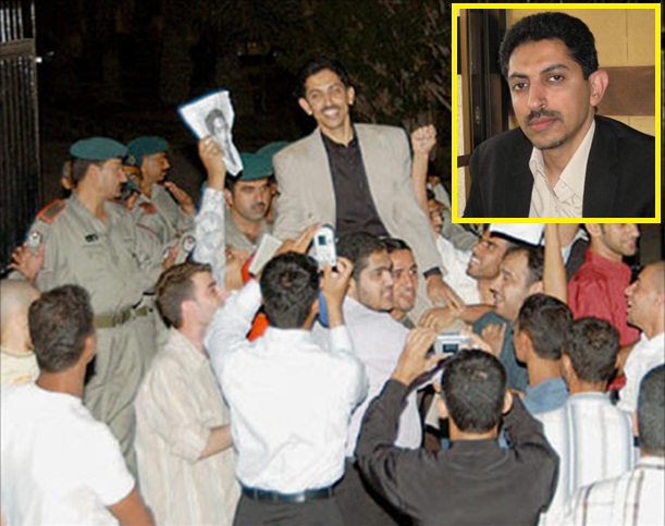الخواجة محمولا على الزكتاف بعد اعتقاله في 2004 لمواجهته رئيس الوزراء