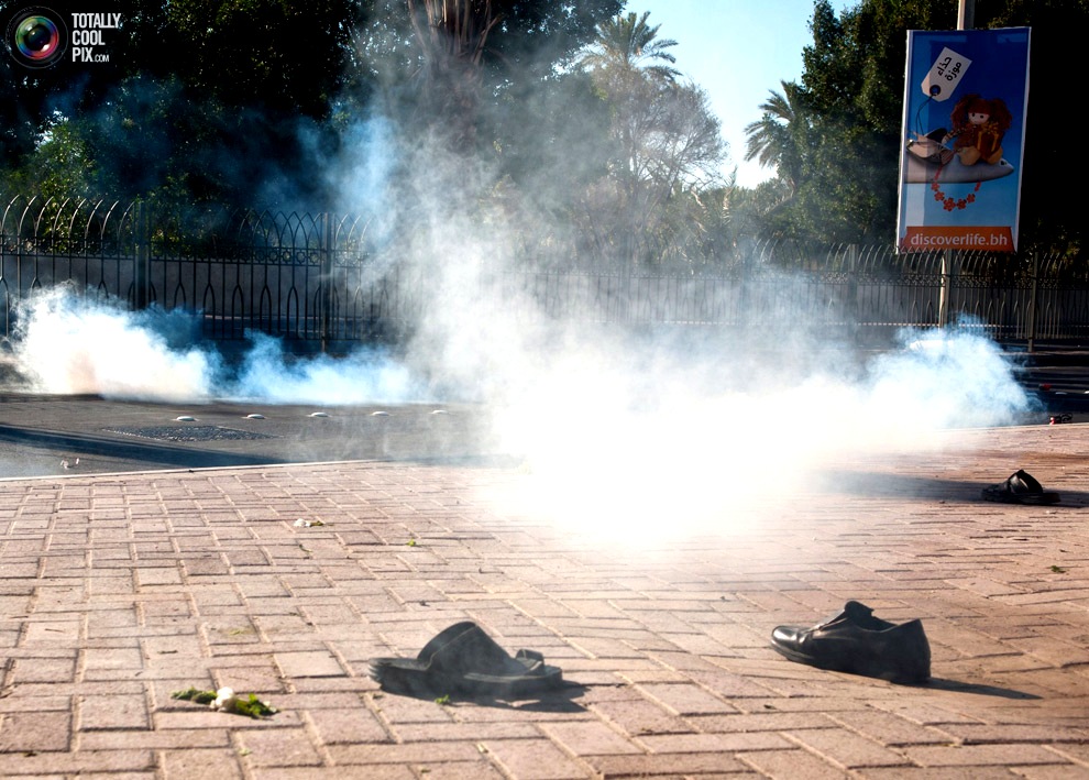 الصورة لجميس دوغا مصور وكالة رويترز للأنباء، وقد ذيل الصورة بهذا التعليق ليستحضر منطوق الصورة من ذاكرته: أحذية تركها أولئك الذين فروا من الشارع بعد إطلاق قوات الأمن البحرينية للغاز المسيل الدموع ضد المتظاهرين المناهضين للحكومة بعد أن انطلقوا من مستشفى السلمانية باتجاه ساحة اللؤلؤة في 19فبراير.