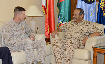 مرآة البحرين: التقى قائد الجيش خليفة بن أحمد آل خليفة في مكتبه أمس الأحد 15 نوفمبر/تشرين الثاني 2015، قائد المشاة البحرية بالقيادة المركزية الأميركية وليام بيدلر والوفد المرافق، وبحث "علاقات التعاون والتنسيق العسكري المشترك القائم بين البلدين الصديقين، إضافة لبحث عدد من المواضيع ذات الاهتمام المشترك".
