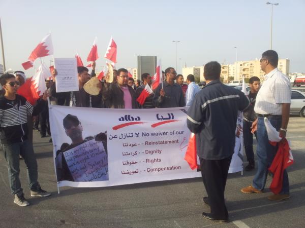 مرآة البحرين: طالب مئات من المفصولين "بالعودة غير المشروطة والكريمة والإنسانية إلى أعمالهم". وقال المفصولون في البيان الختامي لمسيرة "كلا لقطع الأرزاق" التي نظموها عصر اليوم إلى مقر وزارة العمل "عشرات المفصولين يتم استدعاؤهم وتعرض عليهم تعهدات مخالفة لدستور مملكة البحرين والاتفاقيات المعنية بحقوق الإنسان وعلى رأسها العهدين الدوليين وتوصيات تقرير لجنة تقصي الحقائق".