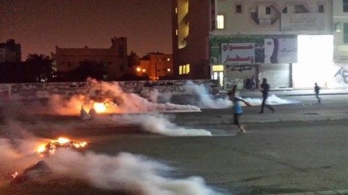 وقال شهود عيان إن القوات استخدمت الرصاص المحرم دوليا بكثافة لتفريق محتجين في بلدتي أبو صيبع والشاخورة غرب العاصمة المنامة.