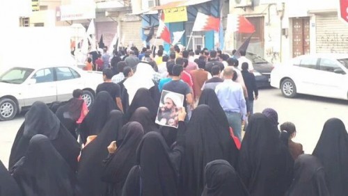 وكان المحتجون يحملون صورا للنمر وواجهوا قوات الأمن في قرية أبو صيبع الشيعية غربي العاصمة المنامة.
