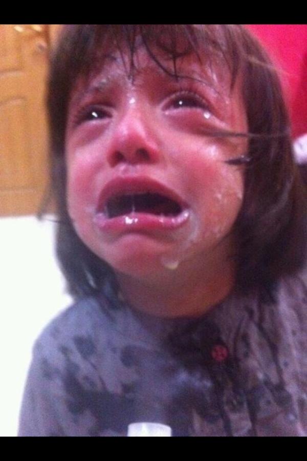 | طفلة مختنقة بمسيلات الدموع التي ألقيت في منزلها من قبل قوات الأمن البحرينية |