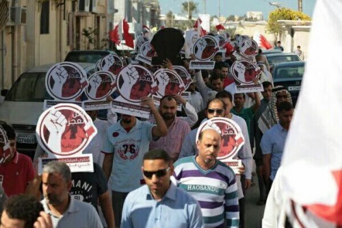 Protestors held photos of detained Sheikh Ali Salman, Secretary-General of Al-Wefaq National Islamic Society, and marched through the streets following Friday's prayers in Al-Diraz, chanting "holding back is impossible". They also held banners that read "hasten to the revolution" and "We shall not be defeated".