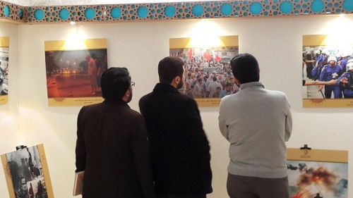 وأقيم المعرض في مرقد (حرم) السيدة معصومة، عرضت فيه صوراً عن التظاهرات الحاشدة والانتهاكات التي تقوم بها قوات الأمن ضد المواطنين.