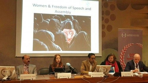ممثلة سلام للديمقراطية وحقوق الإنسان، آنا هاجبرج، توقفت عند استهداف النساء في البحرين، مستعرضة بشكل خاص ما تعرضت له الشاعرة آيات القرمزي، والناشطة جليلة السلمان، والحقوقية زينب الخواجة، والدكتورة رولا الصفار، والقيادية في "وعد" فريدة غلام كخمس حالات من نساء البحرين اللاتي تعرضن للاضطهاد بسبب ممارستهن حقهن في التعبير عن الرأي.