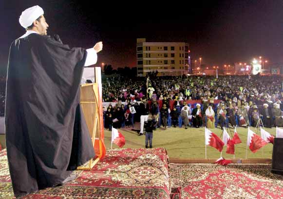 وفي كلمته أمام الحشود، قال الأمين العام لجمعية "الوفاق"، الشيخ علي سلمان، إن "قرار الشعب هو أنه لا عودة إلى قبل 14 شباط، ولا مجال بأن تستمر البحرين بغير المساواة بين أبنائها، ليس لدينا خيار سوى المواصلة، وسنستمر بطريقة سلمية". ولفت إلى وجود حديث حول "سيناريو افتعال العنف وربطه بالحركة المطلبية، وهناك أجزاء من النظام في الديوان الملكي ورئاسة الوزراء، لم تستطع مواجهة مطالبنا، فلجأوا إلى محاولة الكذب للتشويش"، مشيراً أيضاً الى وجود أجهزة أمنية تقوم بأعمال عنف.