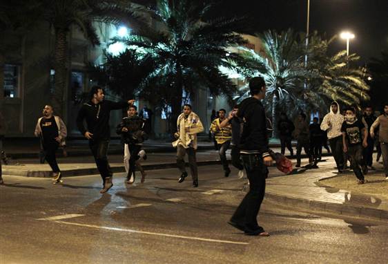 "مصر، تونس، ليبيا" يصرخ المتظاهرون الآن خلال معارك مع قوات الأمن "الدور مقبل على قادة البحرين"