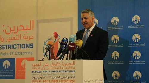 مرآة البحرين (خاص): افتتح منتدى البحرين لحقوق الإنسان، عند الساعة الخامسة من عصر يوم أمس الثلاثاء 29 أبريل/نيسان 2016، مؤتمره الحقوقي الدولي الخامس بعنوان "البحرين...حقوق رهن القيود: حرية التّعبير والتّجمع السّلمي وحق المواطنة"، في فندق «كورال بيتش» في العاصمة اللبنانية بيروت.