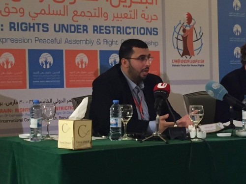 المسؤول الإعلامي في منتدى البحرين لحقوق الإنسان باقر درويش واستعرض في كلمة ما تتعرض له الطائفة الشيعية من تمييز مذهبي "تجذّر منذ اللحظات الأولى لبناء الدولة حتى تحول إلى حالة مؤسساتية".