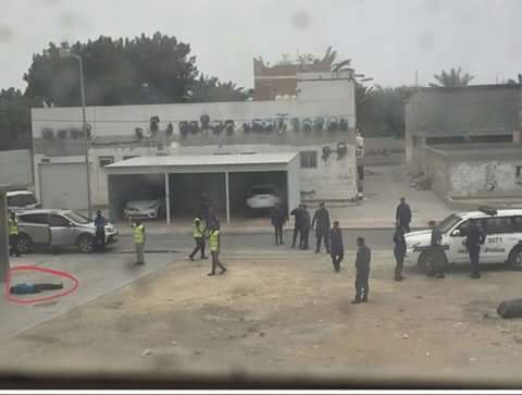 ونشر ائتلاف 14 فبراير صورة تظهر شاباً ملقى على الأرض، محاصر من قبل حوالي 16 فرداً تابعاً للأجهزة الأمنية من عسكريين ومدنيين.