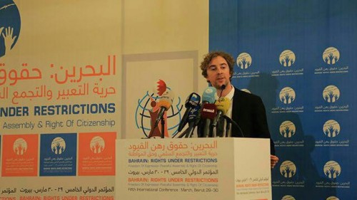 During the opening session of the conference, Antoine Madelin of the International Federation for Human Rights (FIDH) spoke of how the FIDH managed to improve its work in Bahrain, as some of its members entered the country and met with opposition leaders, government officials, foreign ambassadors, and victims as well, whose stories and sufferings Madeline said he'd never forget.