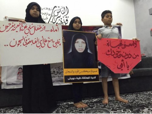 وأصدرت محكمة الأربعاء (30 مارس/ آذار 2016) حكما بالسجن 5 سنوات على المواطنة طيبة درويش، وهي أم لثلاثة أبناء، بنتان وولد من سكنة بلدة المالكية. وكانت قد اعتقلت في 14 مايو/ أذار 2015 بعد ذهابها إلى مبنى التحقيقات الجنائية، حيث داهمت القوات الخليفية منزلها واعتدت على محتوياتها، ليتم طلبها للمثول بعدها لدى جهات التحقيق.