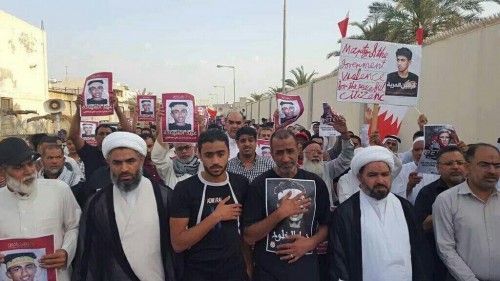 ورفع المشاركون صورا للشاب عبدالغني الذي قضى متأثرا بجروح أصابته أثناء عملية اعتقاله عشية انطلاق سباق فورمولا البحرين، ورددوا شعارات تطالب بإسقاط الملك حمد بن عيسى آل خليفة، الذي يحملونه مسؤولية انتهاكات حقوق الإنسان الواسعة.