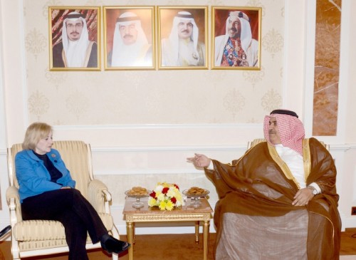 مرآة البحرين: اجتمع وزير الخارجية الشيخ خالد بن أحمد بن محمد آل خليفة، بالديوان العام للوزارة، أمس السبت 9 أبريل 2016، مع كل من مساعدة وزير الخارجية الأميركي لشئون الشرق الأدنى آن باترسون، ومساعد وزير الخارجية لشئون الديمقراطية وحقوق الإنسان والعمل توم مالينوسكي، ونائب مساعد الوزير لشئون الجزيرة العربية سوزان زيادة، والوفد المرافق لهم.