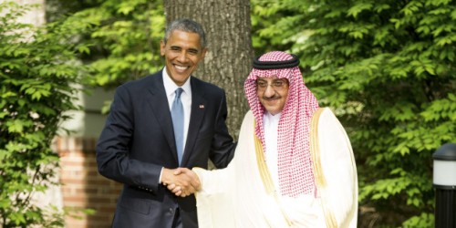 لكن توجب على أوباما الادعاء أمام الملك سلمان (والد ولي العهد) أن الولايات المتحدة تقف بكامل فريقها وراء أمن المملكة وسيادتها -وبالكاد يمكنه القول إنّه سيدعم "الدّيمقراطية" السّعودية لأسباب واضحة - ومن الواضح أن الاحتياطيات الهائلة للنّفط في البلاد، مع إنتاجها مليون برميل من النّفط يوميًا، وموقعها الاستراتيجي، وسيطرتها على الاقتصاد الإسلامي السّني، تعني أنّه على الغرب الذهاب إلى تأدية فروض الطّاعة لكل الرؤوس الكبيرة في المنطقة.