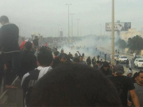 وذكر الشهود أن الآلاف تدفقوا عصر اليوم في باتجاه دوار اللؤلؤة، حيث واجهتهم قوات الأمن بالغازات المسيلة للدموع والقنابل الصوتية. وحصلت مواجهات بين المتظاهرين وقوات الامن خصوصاً عند دوار القدم، على بعد خمسة كيلومترات تقريباً من دوار اللؤلؤة، من دون أن تتوافر معلومات دقيقة عن وقوع إصابات.
