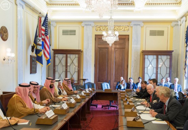وقال المشرعون إن مناقشاته يوم الأربعاء والتي شملت اجتماعات مع لجنتي القوات المسلحة والعلاقات الخارجية بمجلس الشيوخ ورئيس مجلس النواب بول ريان أكدت على مسعاه للمساعدة في إنهاء اعتماد السعودية على النفط بحلول 2030.