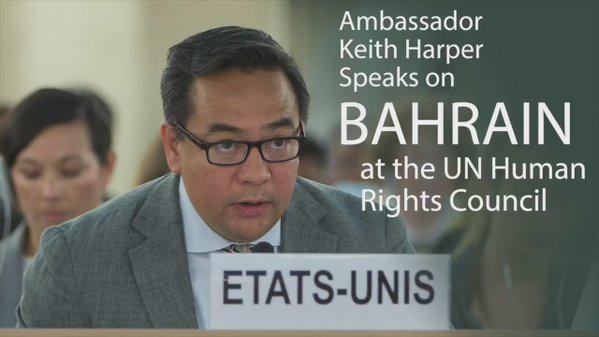 Bahrain Mirror: The United States Ambassador to the Human Rights Council, Keith Harper, expressed his country's concern over the limitations on political activism, shutdown of Al-Wefaq political society in addition to limitations on peaceful assembly in the Kingdom of Bahrain.