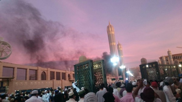 وبينت صور أخرى متداولة على مواقع التواصل الاجتماعي دخانا أسود يتصاعد من ألسنة اللهب قرب المسجد النبوي.