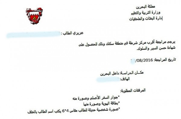 مرآة البحرين: طالبت وزارة التربية والتعليم الحاصلين على بعثات دراسية، بالتوجه إلى أقرب مركز شرطة تابع لمنطقة سكن الطالب المتفوق؛ وذلك للحصول على شهادة حسن سيرة وسلوك من وزارة الداخلية.