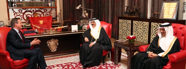 حمد بن عيسى أعرب عن "تقديره لجهود كاميرون ودوره في تعزيز هذه العلاقات العريقة المتميزة بين البلدين وتطوير أسس التعاون بين دول مجلس التعاون والمملكة المتحدة ".