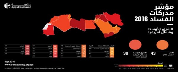 وشملت نتائج تقرير مؤشر مدركات الفساد السنوي، الذي أطلقته منظمة الشفافية الدولية يوم أمس الأربعاء (25 يناير/ كانون الثاني 2016)، 177 دولة.