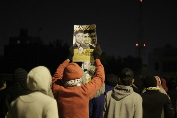 ورفع المتظاهرون صورا للشيخ قاسم والمصاب مصطفى حمدان (18 عاما) الذي أصيب بطلق ناري في رأسه عندما هاجمت قوات تابعة للحكومة ساحة الاعتصام (26 يناير/ كانون الثاني 2017)، كما رفعوا صورا لـ 3 شبان (علي السنكيس، عباس السميع وسامي مشيمع) أعدمتهم السلطات 15 يناير/ كانون الثاني.