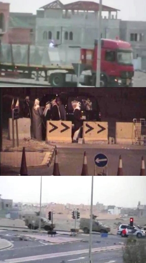 بعضهم يلبسون "الغترة" ويحملون في أيديهم سيوفا وبنادق، تصل سيارة أخرى لدعمهم بمزيد من المدنيين، ثم تصل سيارة عسكرية تتبع الداخلية لمزيد من الدعم، ثم تصل سيارة خاصة من جانب الرفاع عليها الشعار الملكي وصورة الملك وهو يصوب من بندقيته، وتقف عند حدود الحاجز لينسحب الجميع. تظل كاميرا إسماعيل تراقب عودة المدنيين في اليوم الثاني وهكذا رحيلهم!