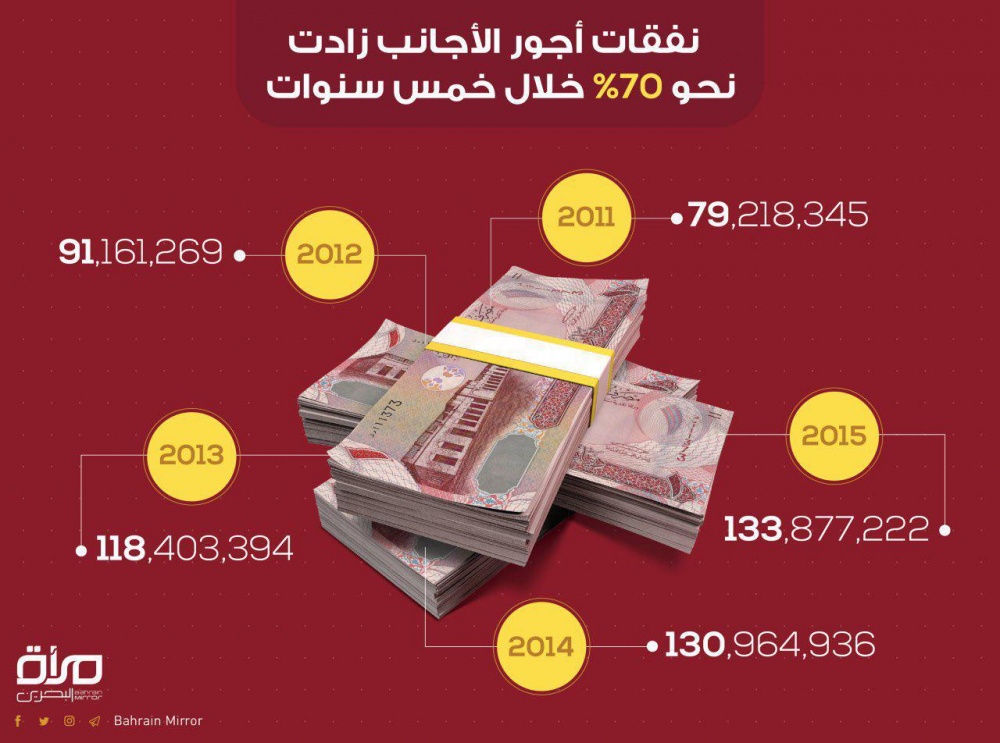 انفوجرافيك- البحرين: نفقات أجور الموظفين الأجانب زادت نحو 70% خلال خمس سنوات