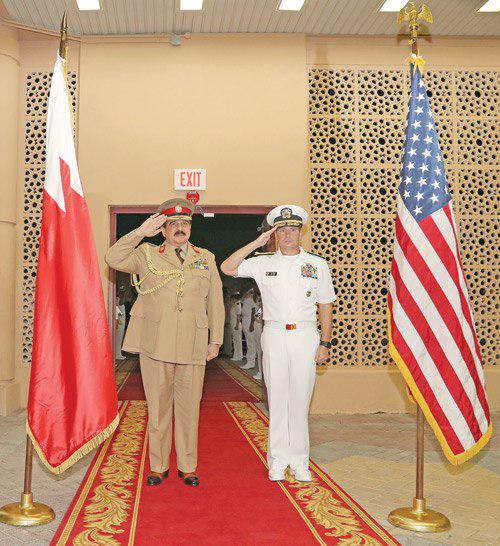 مرآة البحرين: قام الملك حمد بن عيسى آل خليفة أمس بزيارة لمقر وحدة الإسناد البحري الأمريكي بالمملكة، حيث كان في استقباله الأدميرال كيفن أم دونغان قائد القوات البحرية الأمريكية بالقيادة المركزية قائد الأسطول الأمريكي الخامس ووليام روباك سفير الولايات المتحدة الأمريكية.