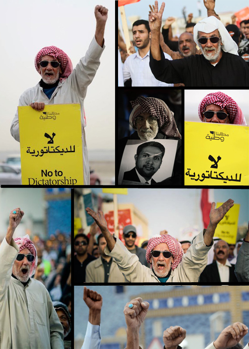 مرآة البحرين (خاص): تجده في أغلب المسيرات والفعاليات بثوبه وغترته التي يربطها أحياناً بطريقة خاصة، ونهاراً تميزه النظارة الشمسية السوداء ... صار معروفاً والأهم أنه غدا محبوباً ... وعن ذلك يقول: "حب الناس من الله، إذا الله أحب عبده الناس تحبه". أهداه الناس اسم "حجي صمود" ... الحاج أحمد المعروف بـ "أبوجميل"، والبعض يسبق التسمية بكلمة "الوالد"، عمره 65 سنة، عالق في السياسة منذ صغره كما يقول، لم يعتقل قط، ووالده شهيد في التسعينات ..