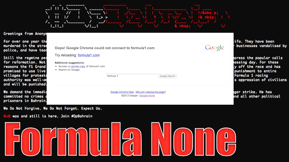 وكانت "أنونيموس" قد اخترقت موقعاً لـ "فورمولا واحد" هو http://f1-racers.net/