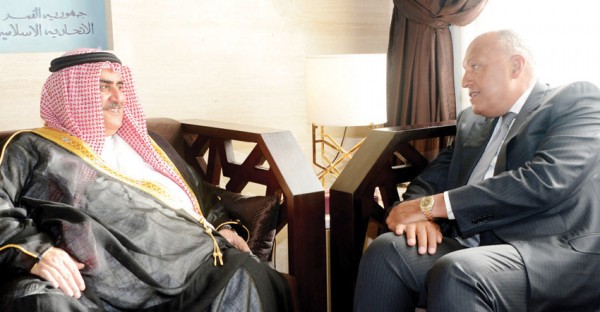 مرآة البحرين: اجتمع وزير الخارجية البحريني خالد بن أحمد بن محمد آل خليفة مع نظيره المصري سامح شكري، على هامش اجتماع جامعة الدول العربية، حيث تم التشاور حول "الاجتماع الذي ستستضيفه المنامة يوم الأحد المقبل لوزراء خارجية كل من البحرين والسعودية والإمارات ومصر" لمناقشة مستجدات الأزمة مع قطر.