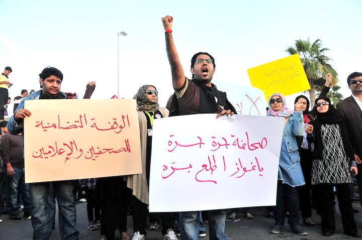 وبعد كل هذه الأنتهاكات والعذابات والترهيب الذي نال الصحفيين من السلطات، نددت نقابة الصحفيين البحرينية – حينذاك – بعمليات إلقاء القبض على الصحفيين وتوقيفهم لتغطيتهم أحداث فبراير ومارس 2011، وذهب النقابة إلى أن عمليات القبض تشكل جزءاً من الحملة المنظمة التي قادتها حكومة البحرين ضد الصحفيين والمصورين والمدونين وغيرهم من الإعلاميين البحرينيين، وتبلورت تلك الحملة في شكل الفصل من العمل والرقابة على ما ينشر والاعتقالات وإساءة المعاملة.
