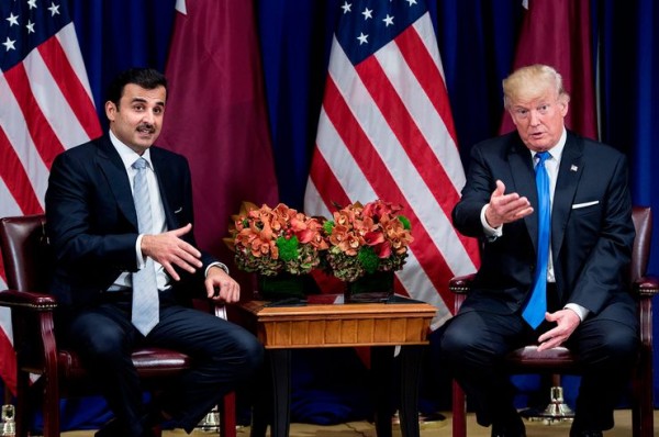 وقد التقى ترامب بأمير قطر، الشّيخ تميم بن حمد آل ثاني، في الجمعية العامة للأمم المتحدة في نيويورك يوم الثلاثاء. وعند سؤاله من قبل أحد المراسلين ما إذا كان قد حذّر السّعودية والإمارات من تحرك عسكري ضدها [قطر]، أجاب ترامب بالنفي. وفي الاجتماع ذاته، واجه ترامب الزعيم القطري بما قاله أحد المسؤولين الأمريكيين، إنّه دليل على أن قطر ما تزال متورطة بالأنشطة المتعلقة بالإرهاب، وقال له إنّه عليه وقف ذلك.