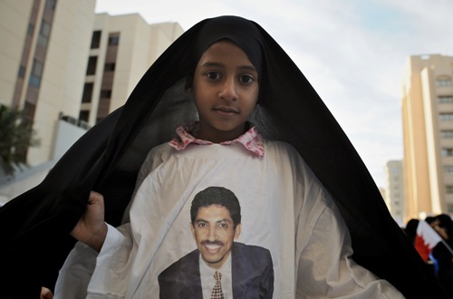 وطالب المشاركون "بسقوط النظام وإطلاق سراح الناشط الحقوقي عبد الهادي الخواجة ورئيس "مركز البحرين لحقوق الانسان" المعتقل نبيل رجب.