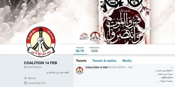 مرآة البحرين: زعمت وزارة الداخلية البحرينية أن حساب "ائتلاف 14 فبراير" عبر تويتر مصدره إيران وتتم إدارته من هناك.